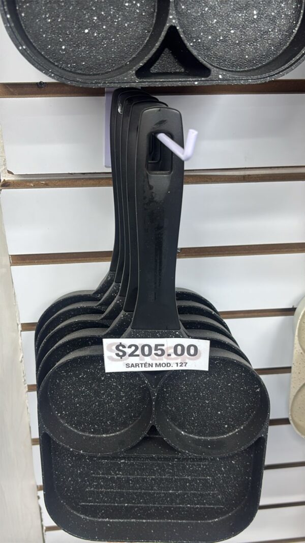 Sartén color negro con 3 espacios para calentar y cocer